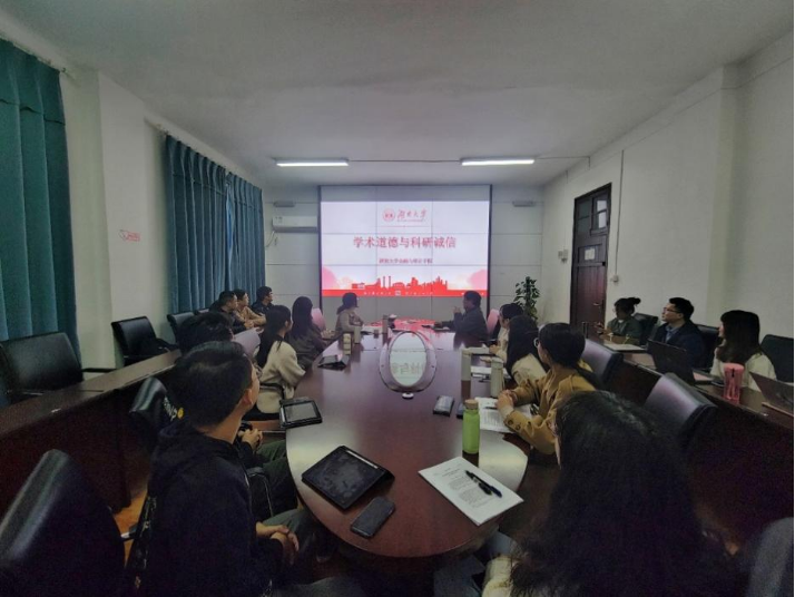 本次活动依托学院各导学团队,采用“导师讲、学生谈、一起做”的形式,围绕“科学精神与学术规范”为主题进行展开,帮助学生树立诚信意识。共邀请到了喻旭兰、龙海明、胡宗义等导师对他们的课题组进行学术诚信教育。