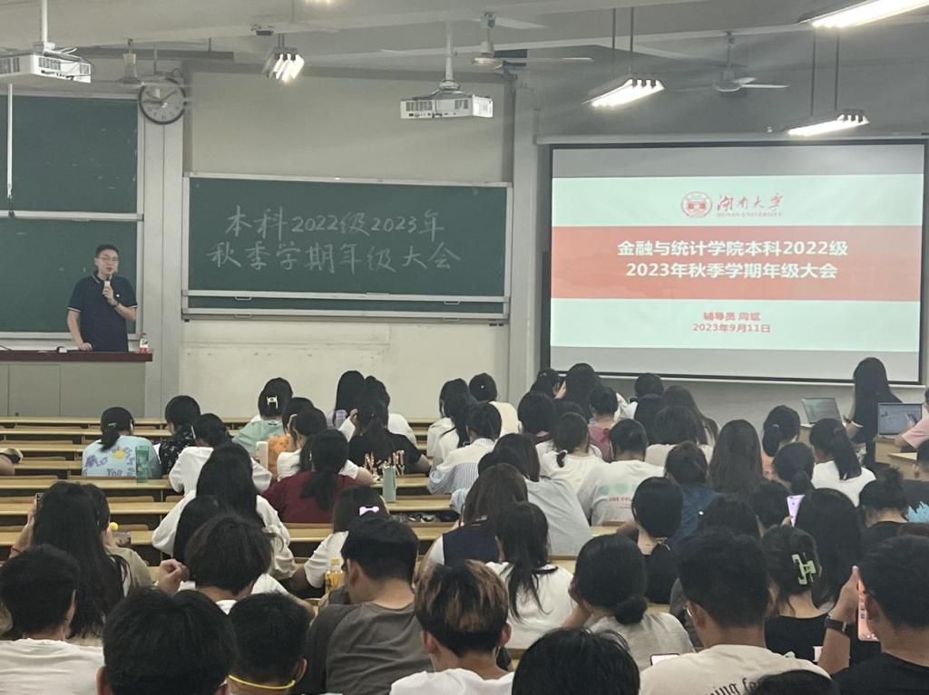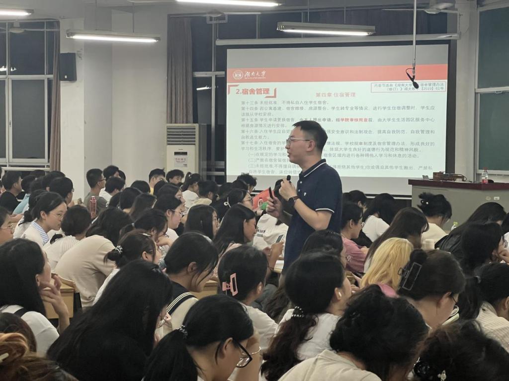 周斌再次强调了请假离校制度,解读学院宿舍管理相关条例,讲解诚信考试的注意事项以及考试违规处理办法,号召全体同学积极参与每周青年大学习。他向全体同学通报近期工作情况,介绍了学费缴纳、医保报销、学平险投保等事务的详细流程,提出推优入党、年级组成员增补及奖助学金申请等相关事宜。他对转入学院的新同学表示欢迎,为全体同学理清了本学年规划,勉励大家在新的学年保证学习,拓展知识,把握机会,不留遗憾。