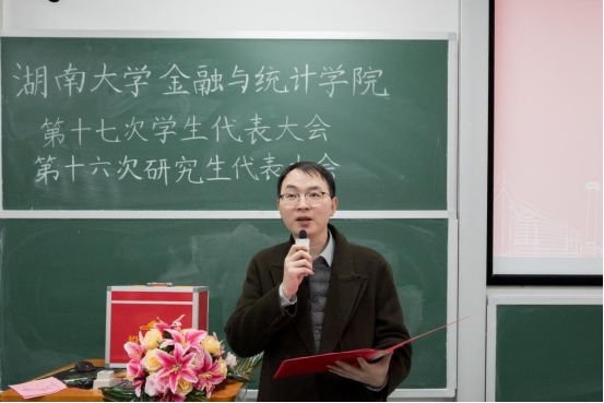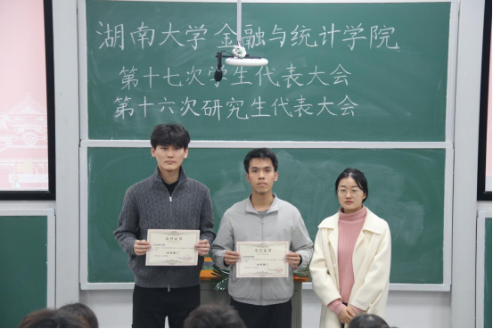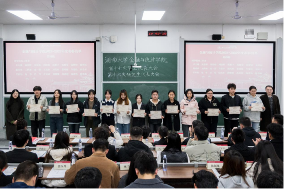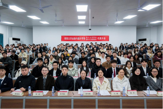 谭凤娥代表学院党委向大会的召开表示热烈祝贺,高度肯定学院学生骨干过去一年在思想引领、学风建设等诸多方面取得的扎实成效,对全体金统学子寄予殷切希望:一是立足中国人民抗日战争暨世界反法西斯战争胜利80周年,传承弘扬湖大师生教育报国的精神底色与责任担当;二是紧扣党的二十届四中全会擘画的“十五五”规划发展蓝图,以青春之我、奋斗之我投身强国建设、民族复兴伟业,彰显青年锐气、贡献青春力量。她寄语全体大会代表,要始终秉持公平公正原则,认真审议各项提案与工作报告,审慎选举产生新一届学生会和研究生会主席团,为学院学生工作注入源源不断的青春活力。