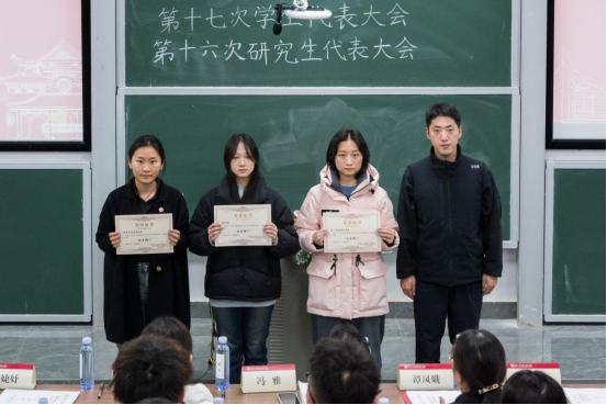 与会代表审议并通过了《漫蛙漫画 第十七届学生会主席团候选人名单(草案)》和《漫蛙漫画 第十六届研究生会主席团候选人名单(草案)》等文件。主席团候选人依次上台介绍自身情况,经过民主表决与无记名投票,大会最终选举出刘丹阳、匡启泽、王震坤三人为第十七届学生会主席团成员,刘泊麟、王欣怡、熊蕾三人为第十六届研究生会主席团成员。会旗交接仪式标志着新一届学生会与研究生会主席团的正式诞生。