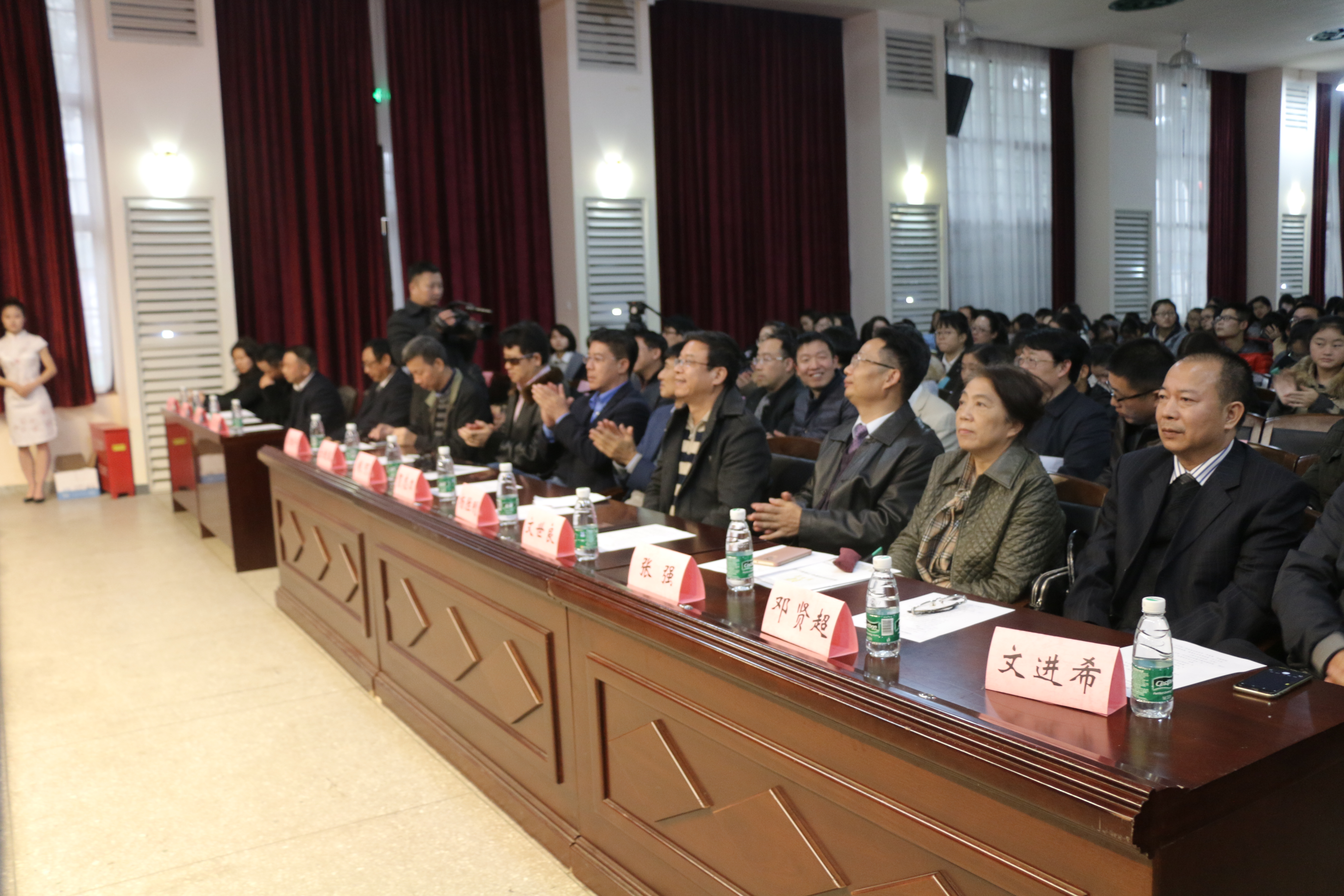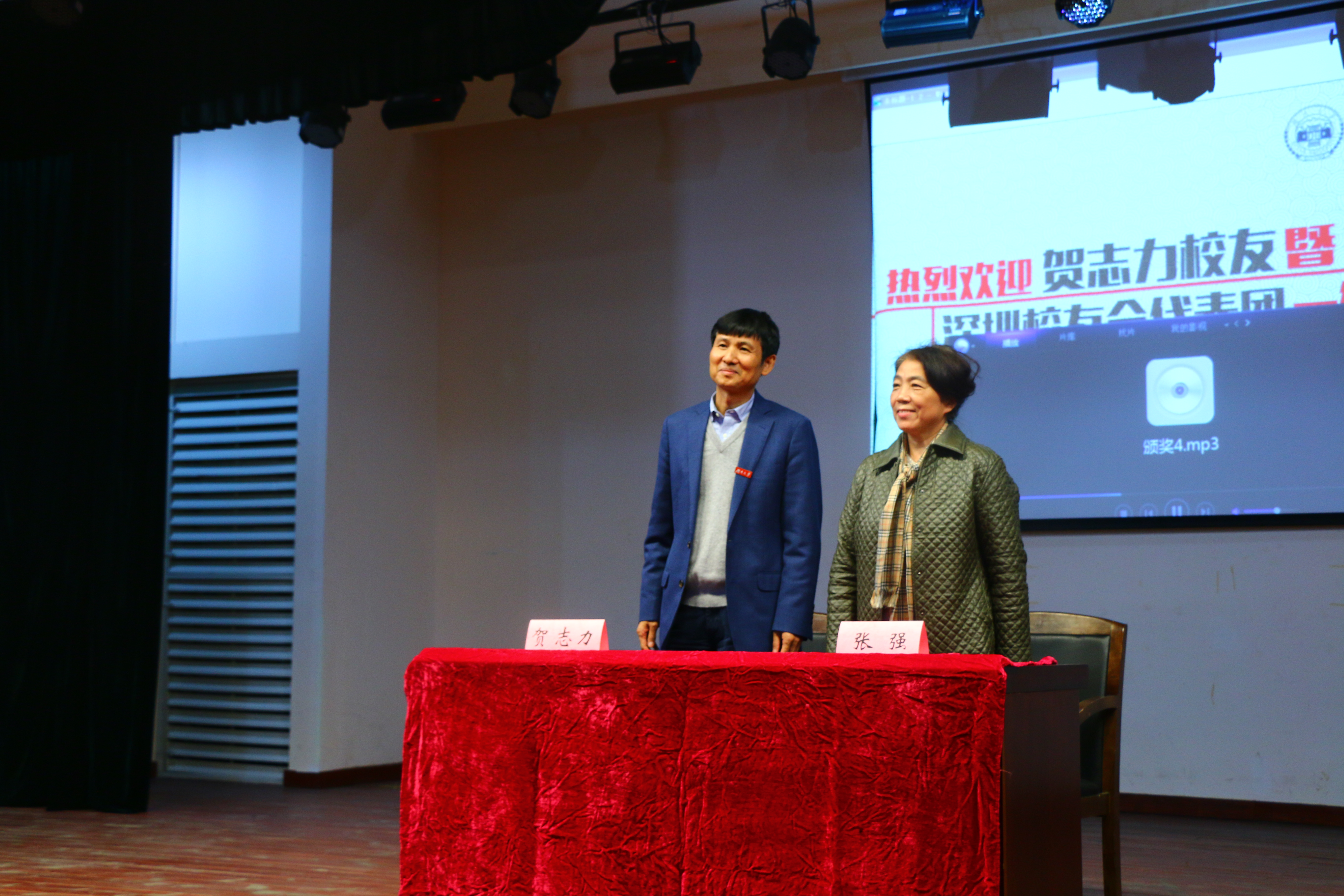 在郑重庄严的伴奏中,金统院院长沈中华教授宣读聘任贺志力、文世良校友为金融学科教授并颁发聘书。教务处彭秋平副处长为两位校友佩戴校徽,张强理事长与贺志力校友签订捐赠协议,杨副校长向贺志力校友及深圳校友会颁发捐赠证书。