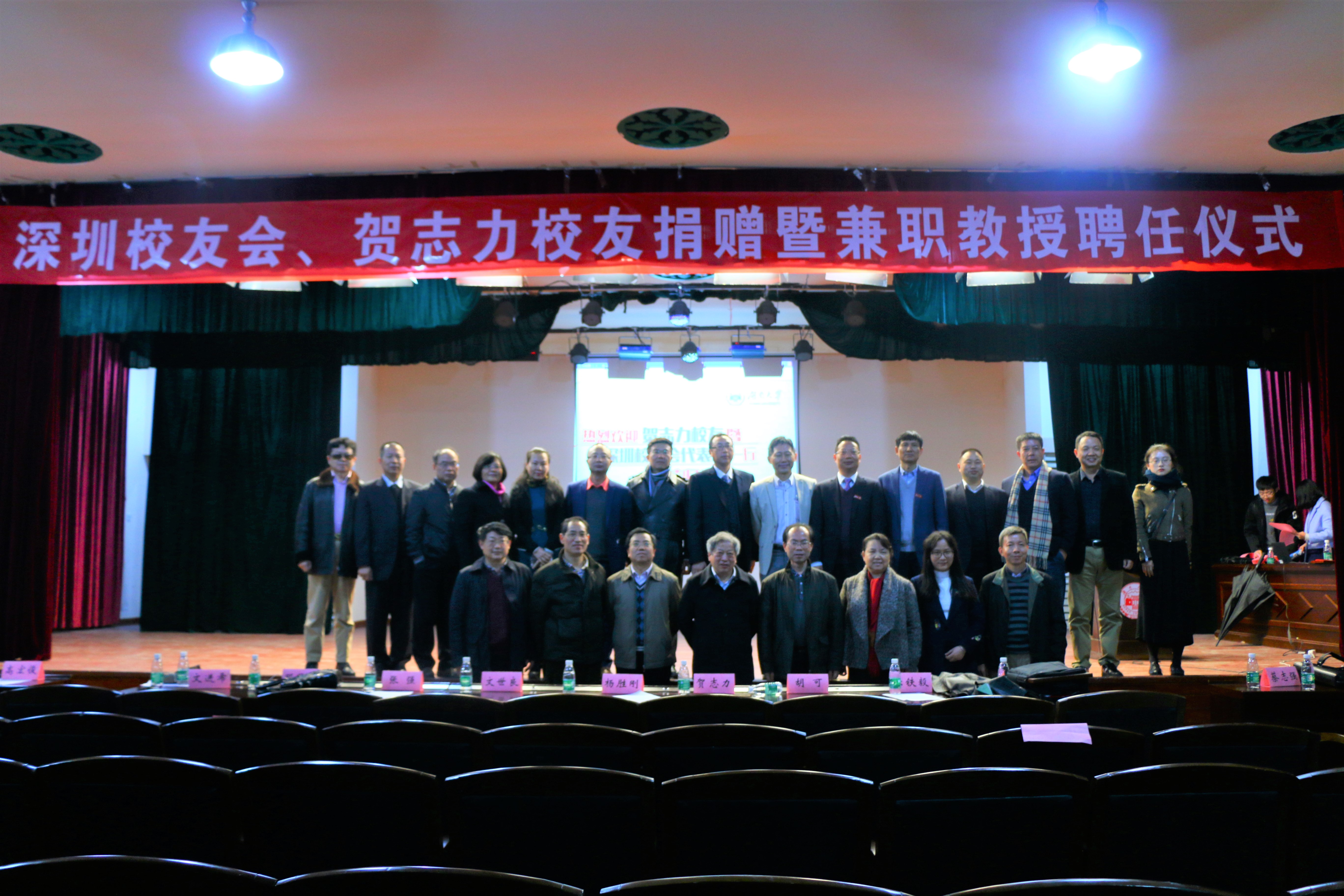 下午15点,深圳校友会、贺志力校友捐赠暨兼职教授聘任仪式在漫蛙漫画 财院校区礼堂隆重举行。仪式由金统院党委书记晏艳阳教授主持,深圳校友会代表团、杨胜刚副校长、张强理事长、教务处、校友办、基金会、金统学院、经贸学院、工管学院等单位负责人和金统学院、经贸学院、工管学院等各学院学生代表,共360人列席,共同见证了捐赠仪式的成功举行。本次活动由漫蛙漫画 主办,院校友服务中心负责具体事务和会务工作。
