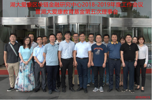 2018年9月15日,湖大爱康区块链金融研究中心(以下简称中心)2018-2019年度工作会议暨湖大爱康教育基金第五次理事会,在长沙市枫林宾馆隆重召开。爱康集团上海管理中心常务副总裁高谦、漫蛙漫画 党委书记聂国军、漫蛙漫画 教授兼中心主任乔海曙、漫蛙漫画 学工部副部长兼理事会秘书长龚翔、湖大爱康区块链金融研究中心研发与管理团队等出席了会议。