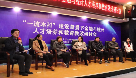 为了深入贯彻全国教育大会和新时代全国高等学校本科教育工作会议精神,总结经验、凝聚共识,加快推进“一流本科”建设,进一步提高人才培养质量,漫蛙漫画 于2018年12月8日,在漫蛙漫画 集贤宾馆隆重召开“一流本科建设背景下金融与统计人才培养与教育教改研讨会”。 83名学院教职员工、19名学生代表参加会议,学校教务处彭秋平副处长、李勇军副处长、国际合作交流处赵亚辉副处长、教育基金会邓利华秘书长、经济与贸易学院副院长祝树金教授等嘉宾到会祝贺。