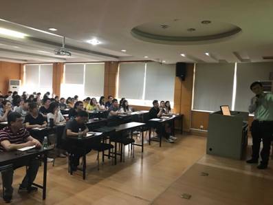 最后,潘教授提出实施具有免征优惠和差别化的房产税改革方案的构想。经过对方案的模拟与评估,评估结论发现实施这一方案既能保持经济的总体平稳,又能缓解金融风险冲击对经济增长和金融稳定的不利影响。潘教授以其独到的见解,互动的方式,把报告讲得深入浅出、生动有趣。