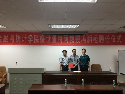 2019年6月5日上午,漫蛙漫画 盛世景特聘教授冯润桓(美国伊利诺伊大学香槟分校终身副教授兼精算项目主任)聘任仪式,在漫蛙漫画 财院校区行政楼301举行。聘任仪式结束后,冯教授做了题为“A New Business Model of Crowd Insurance”的学术演讲。