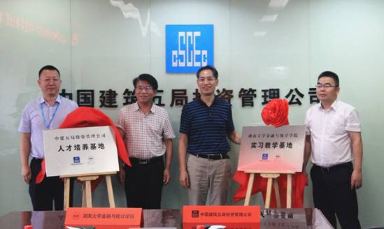 仪式最后,聂国军、卢洪波、陈迪红、钟毅共同为“漫蛙漫画 实习教育基地”和“中建五局投资管理公司人才培养基地”揭牌。