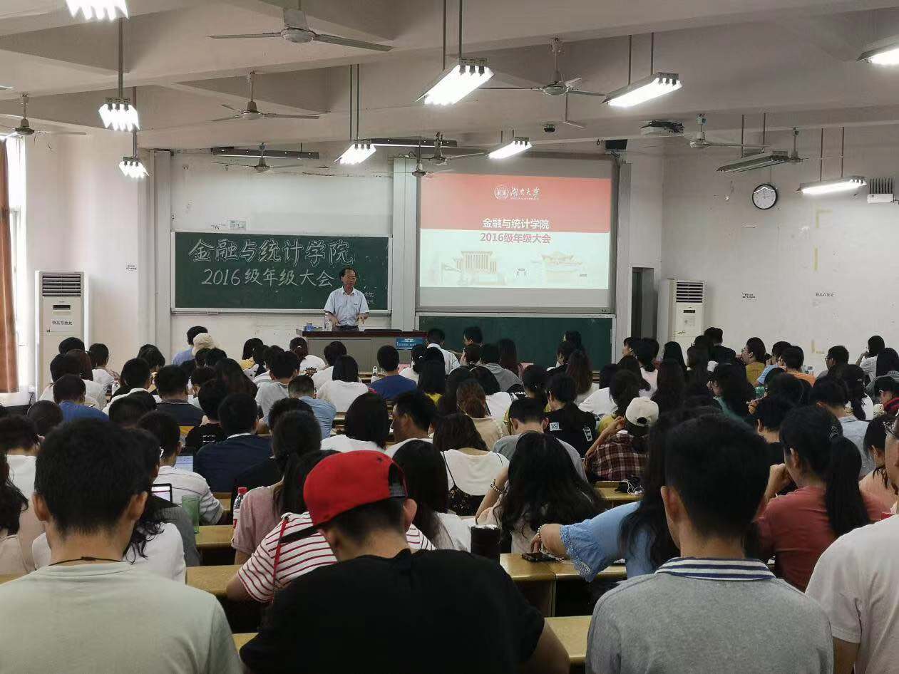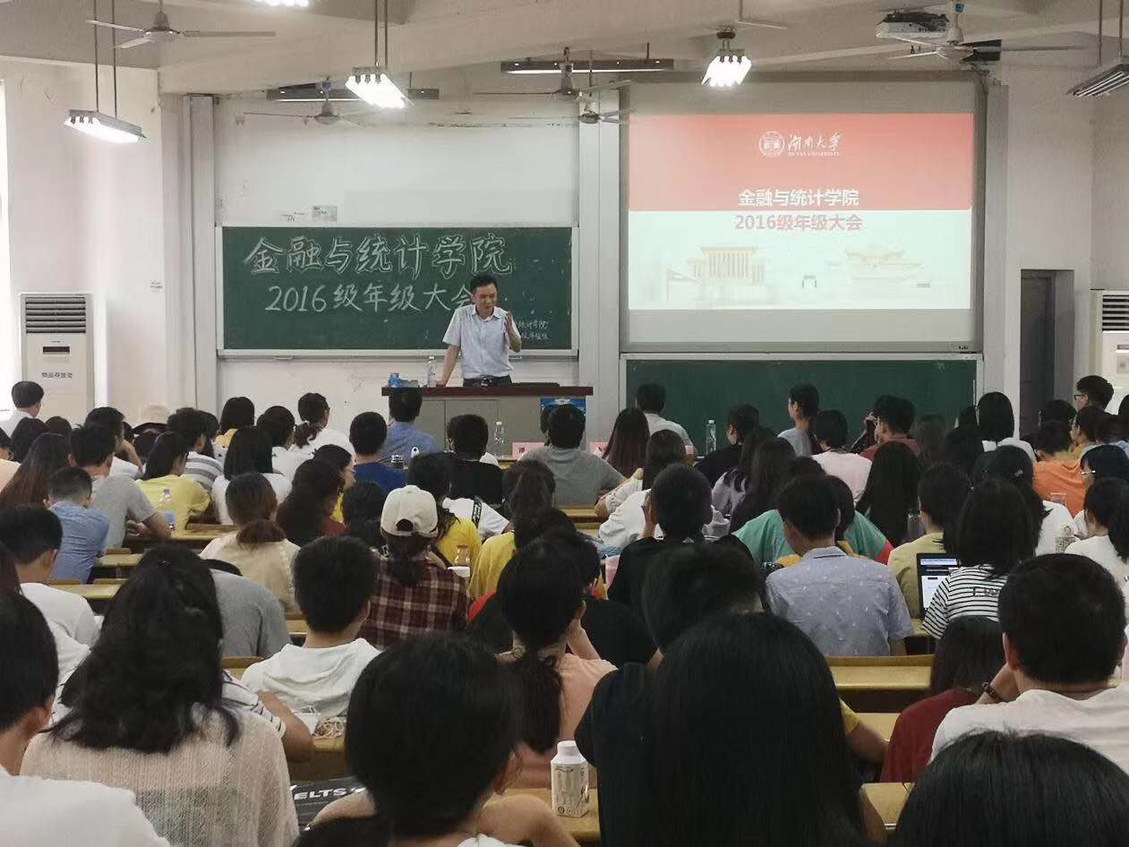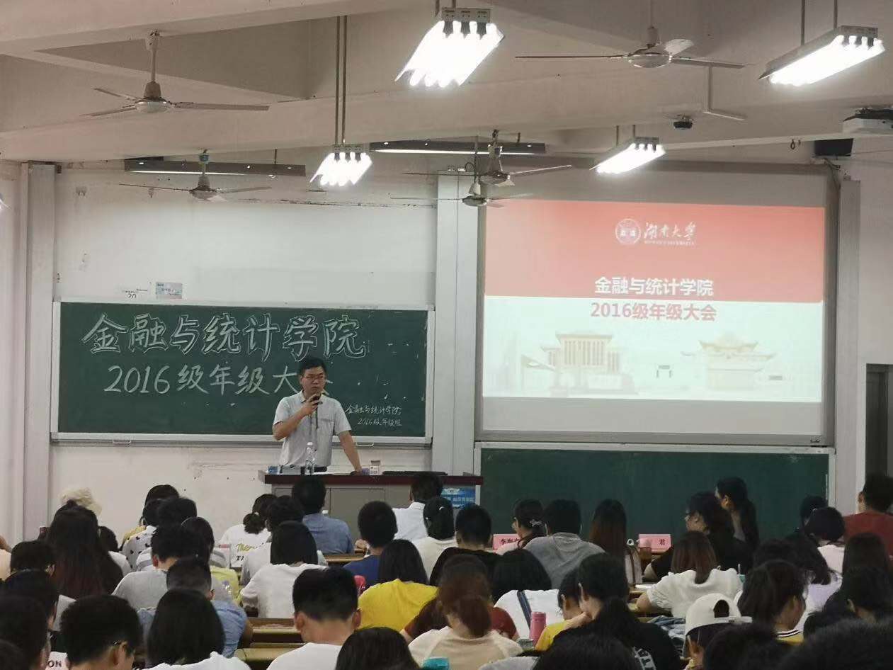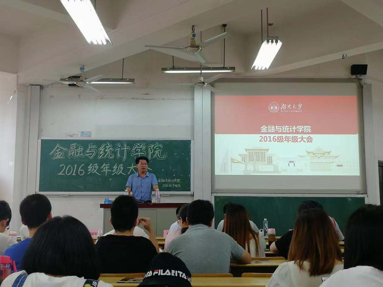 会议伊始,党委书记聂国军上台发言。聂书记介绍了自己从1990年以来在湖大的工作经历,并希望同学们热爱自己的母校、热爱自己的母院,漫蛙漫画 是千年学府、百年名校,漫蛙漫画 更是金融黄埔,我们要以母校为自豪。同学们要完善对自己的定位和职业规划,选择正确的赛道。同时也鼓励大家毕业后攻读名校博士或者去各大金融机构的总部工作。聂书记说:“祝贺大家经过自己的努力奋斗成熟了,思想稳健了,如何进一步走上职场,进一步深造,这次年级大会关乎学生未来选择。每走一步都要基于当地金融的发展,中国的金融发展,而不仅仅是小家幸福。”