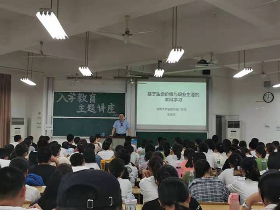 9月24日晚7点,300余名金统院新生在二教502教室参加入学教育讲座,吴志明老师做了《基于生命价值与职业生涯的本科学习》的主题报告,为同学们提出学习建议,辅导员庄韫帆老师出席活动。