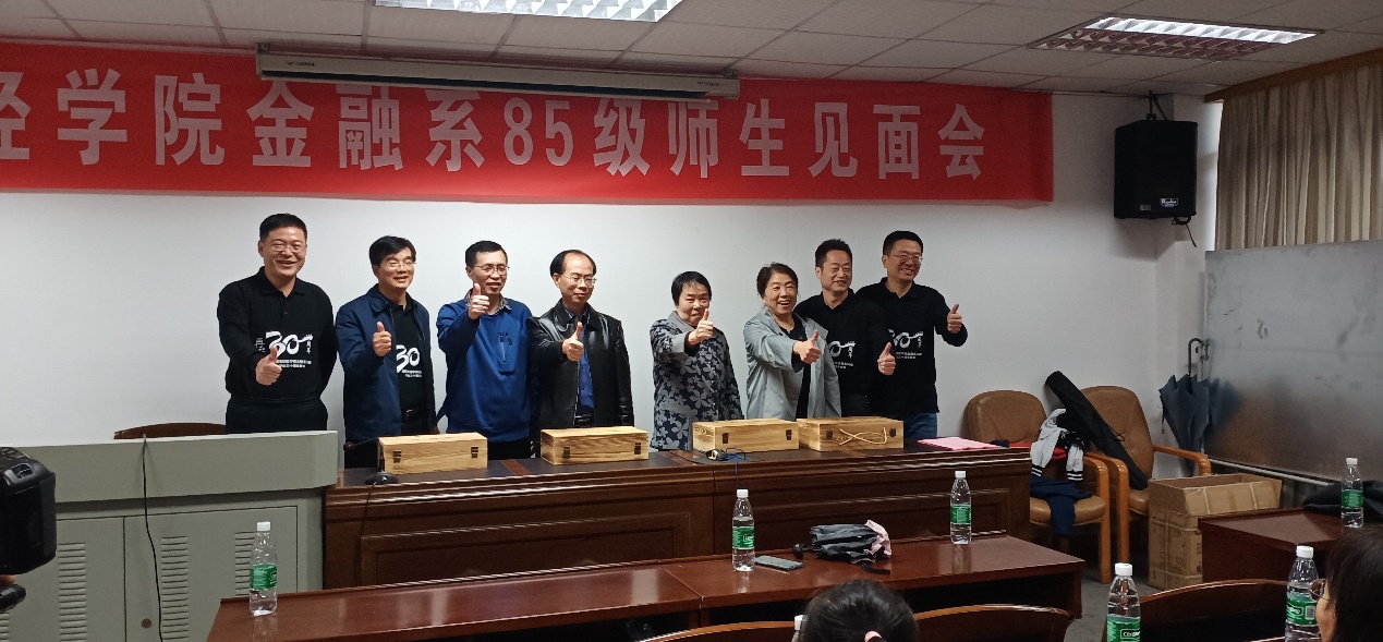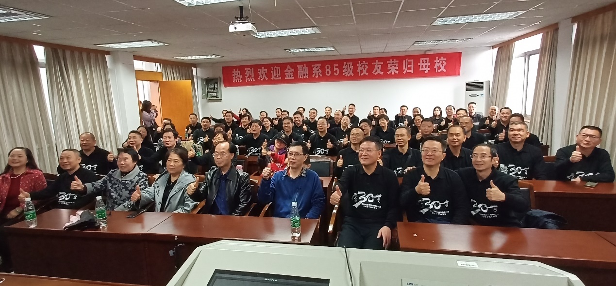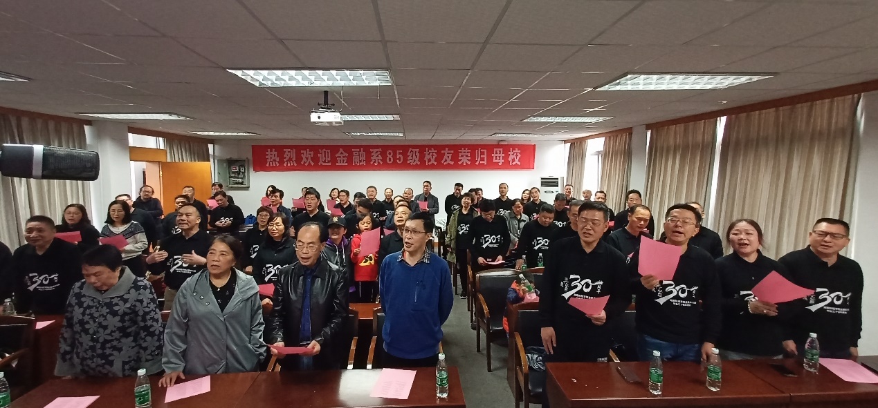 最后,校友们一起到行政楼301举行师生见面会。首先上台发言的是本次聚会的组委会代表陈斌校友,他对各位校友的到来表示感谢,并且感恩老师和学校的精心栽培。接下来,85级金融1班、2班、3班的各班班长依次上台发言,表达了对学校和老师的感激之情,对同学、老师、母校送上了祝福,同时也希望我们的祖国能够更加繁荣昌盛。之后,漫蛙漫画 原副校长张强老师和漫蛙漫画 副书记刘周平老师上台发言,向校友们讲述了湖南财经学院到漫蛙漫画 的变迁史,向校友们介绍了我们学院的教育资源以及强大的师资力量,同时表示在未来的努力下,我们学校将会更上一层楼,刘书记讲话结束时还连用几个“好”字开头的词语来表达对校友和老师们的祝愿。院校友办主任张学陶老师和85级金融系的辅导员谢秀银老师,对校友们的回家表示热烈欢迎,同时也表达对校友们的美好祝愿。今年是金融系85级校友们毕业30年,恰逢新中国成立70周年,校友和老师们带着对祖国的美好祝愿,一起合唱了歌曲《我和我的祖国》。下午校友们参观了湖南财经学院校史馆,还在第二教学楼举行了班会活动。