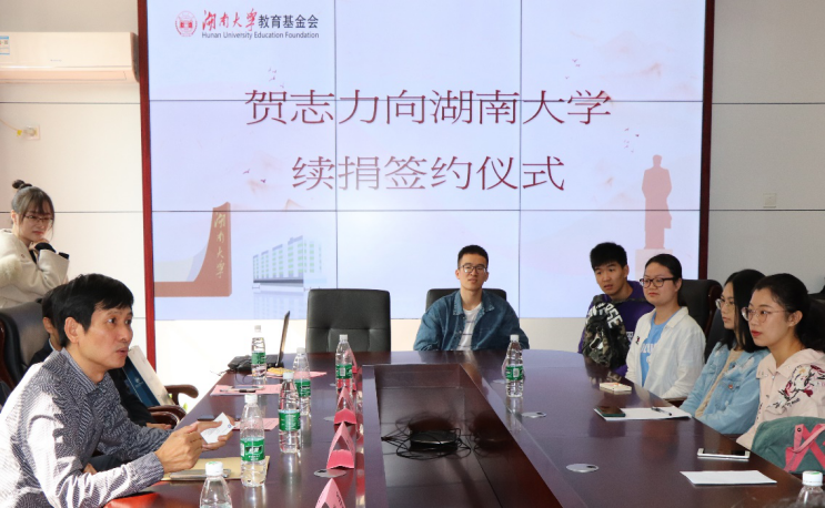随后,由校友贺志力先生发言。他平易近人地和大家分享自己的人生经历,从开始的艰辛到如今的成就,贺志力先生精彩传奇的阅历不仅为学生代表们提供了宝贵的借鉴经验,而且激发了他们继续努力学习、攀登高峰的斗志。他告诉学生代表,一定要踏踏实实学习,一份投入一份付出,一定会有回报的。并且表明自己会继续致力于支持教育事业的决心。随着贺志力先生诚挚精彩发言的落幕,会议室响起了热烈的掌声。