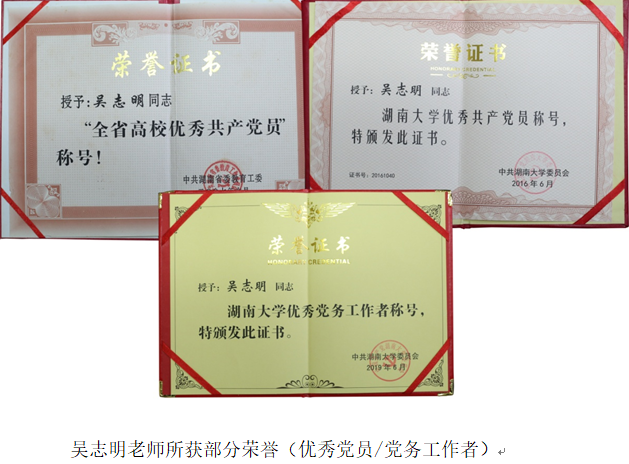 2017-2019年,吴老师指导的学生项目连续三年获得中国金融教育发展基金会“普惠金融,青春践行”大学生暑期社会实践有奖征文特等奖,自己连续三年获得优秀指导教师称号。吴老师2007年获“全省高校优秀共产党员”,2017、2018年连续获得漫蛙漫画 优秀教学质量奖,以及漫蛙漫画 2017年“我心目中最敬爱的老师”。