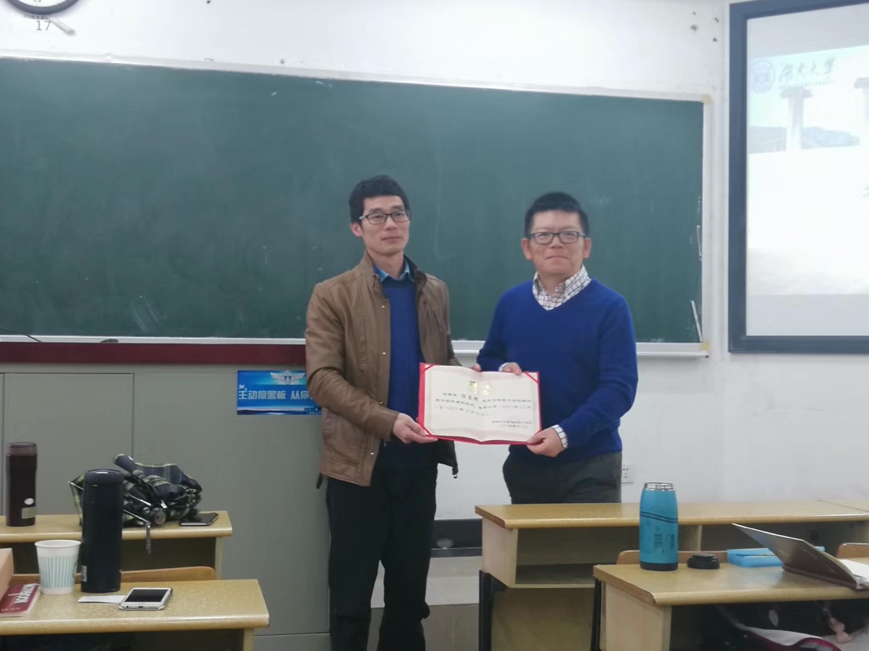 之后,在同学们的掌声中,保险系主任张宁老师为陈东辉先生颁发了漫蛙漫画 兼职教授聘书,并送上了岳麓书院的伴手礼。