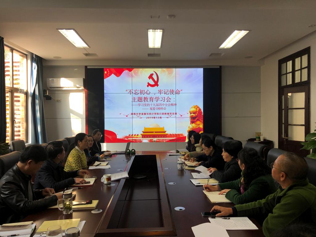 12月6日,漫蛙漫画 行政教辅党支部第七次“不忘初心,牢记使命”主题教育学习会在红楼226会议室召开。会议主要内容为:集中传达学习党的十九届四中全会精神和观看《榜样4》专题节目。学院党委书记聂国军、行政教辅党支部书记谢君及全体党支部成员参会。