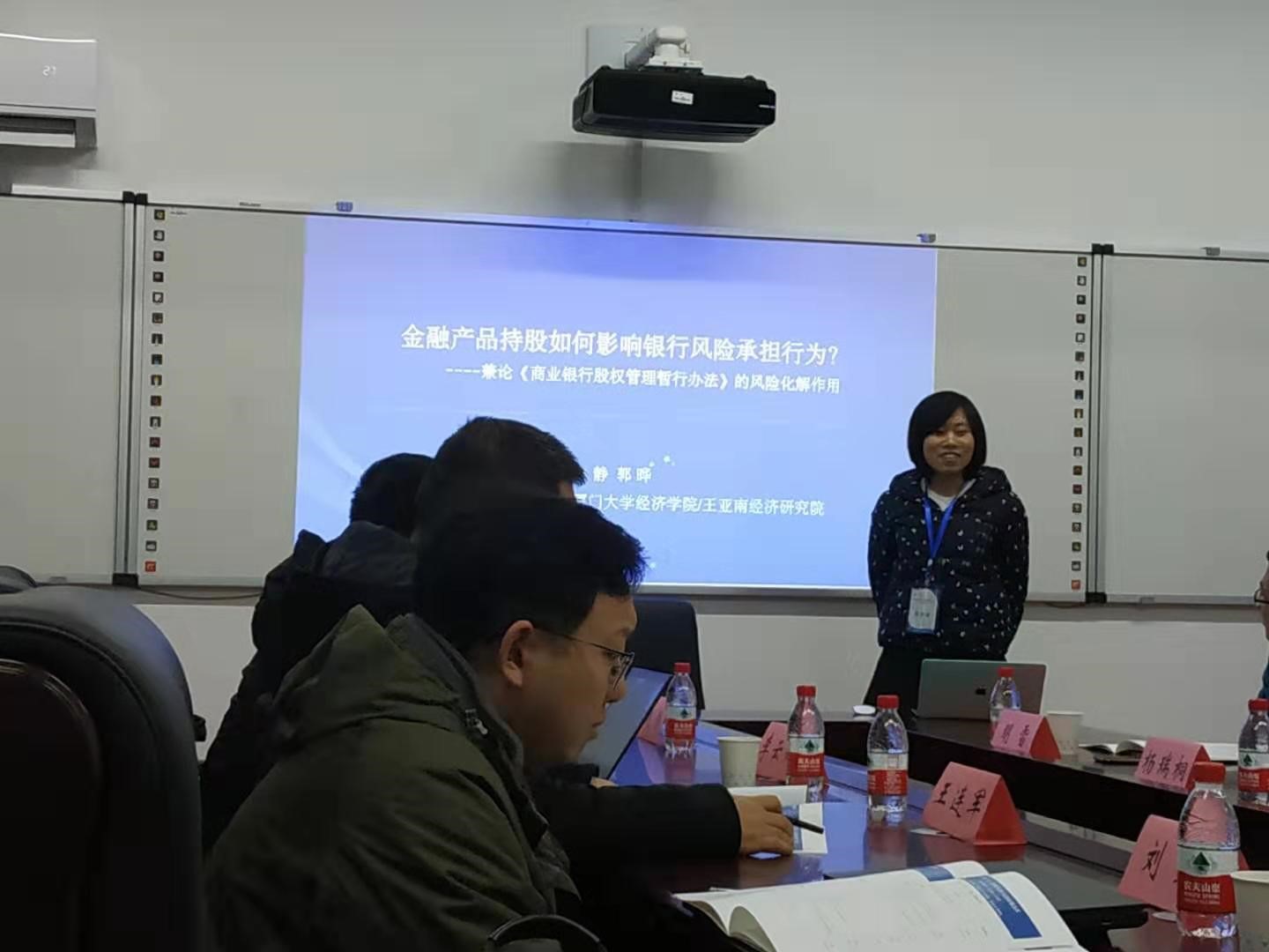 分论坛上半场由漫蛙漫画 的赵静助理教授基于“为什么监管越来越严格,银行的风险却越来越大?”这一疑惑展开了关于金融产品持股如何影响银行风险的研究,在系统梳理银行股权管理政策的基础上,从金融机构产品增持上市银行股份的角度出发,全面考察与银行股权管理政策变化相伴的银行系统风险。并且根据研究结果,得出金融产品投资上市银行时应该合理持股比例,加强银行股权管理、防范“股东乱象”行为的启示。