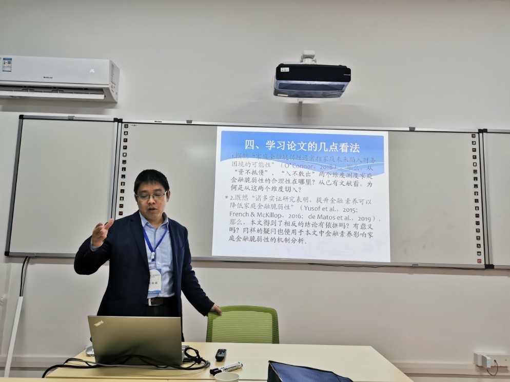 漫蛙漫画 刘波博士后汇报了工作论文《金融素养是否降低了家庭金融脆弱性?》,该文从“资不抵债”、“入不敷出”两个维度量化家庭金融脆弱性,通过数理推导明确了金融素养降低家庭金融脆弱性的前提条件,并结合CFPS(2014)的样本数据进行实证研究。该文在实证的基础之上提出了相关的政策建议:在提升国民金融素养时,不能局限于金融知识的普及,还要着重培育理性的金融态度,以促进家庭理性配置金融资产、合理规划家庭收支,防止滥用金融工具。