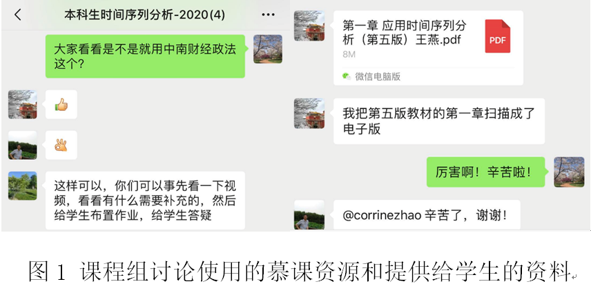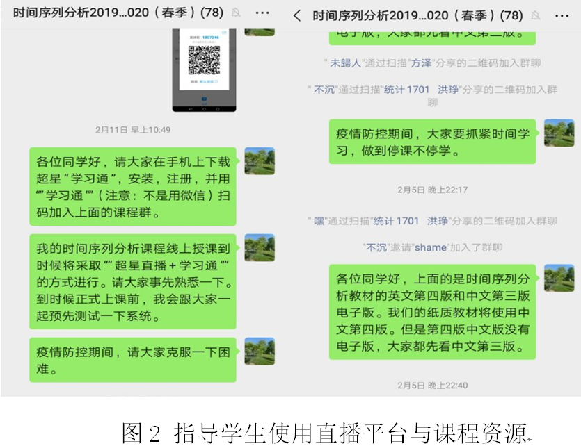 此外,为了让学生尽快适应和熟悉线上教学平台,时间序列分析课程组老师积极与学生进行沟通,指导学生安装线上教学软件,了解学生的困难与需求,做到“让每一位学生都能参加课程,不让任何一位学生掉队”。