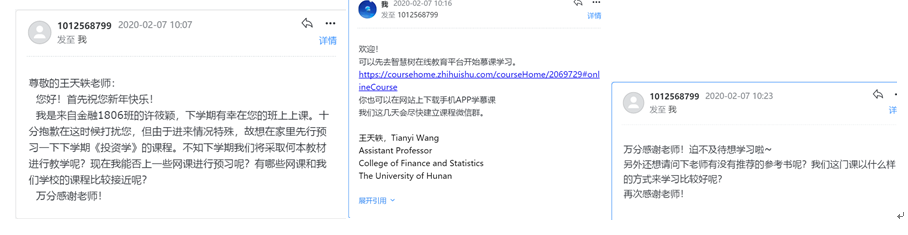 同学们的学习热情非常高涨。在还没有建立课程群的时候,就已经有学生和老师联系,希望提供线上学习资源。