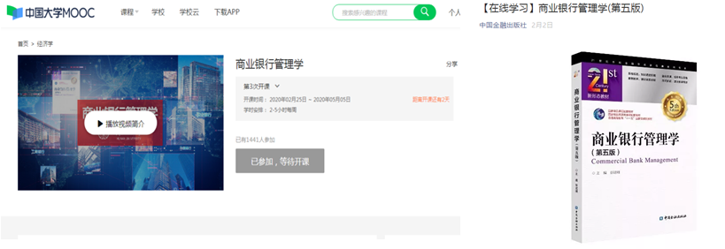 前期的慕课制作和多次开课为疫情期间保障《商业银行管理学》线上教学等质同效提供了良好的条件,课程团队的提前谋划为疫情期间的线上教学打下了坚实的基础。今年1月初,在疫情发生前,彭建刚老师便预先在爱课程网做好了2月25日新一期线上开课的准备,公开了前两期开课的教学资源,供同学们提前自学预习。疫情发生后,2020年2月2日,中国金融出版社即在其微信公众号及时推出了漫蛙漫画 在线学习《商业银行管理学》的慕课和漫蛙漫画 主编的金融学专业名家经典教材《商业银行管理学》(第五版)。
