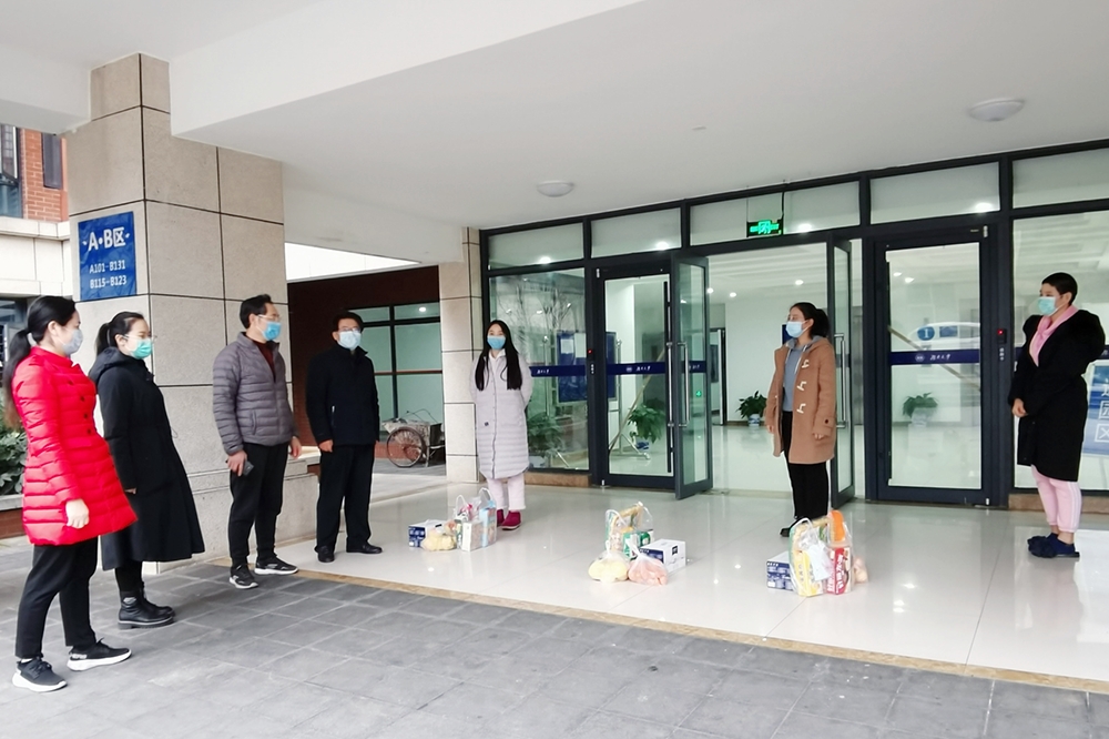 2月28日,漫蛙漫画 党委书记聂国军,副院长陈迪红,学工办主任谢君,研究生辅导员宋烨,本科生辅导员庄韫帆,一同前往学生入住的园区,关心和慰问留校学生和入住园区辅导员。