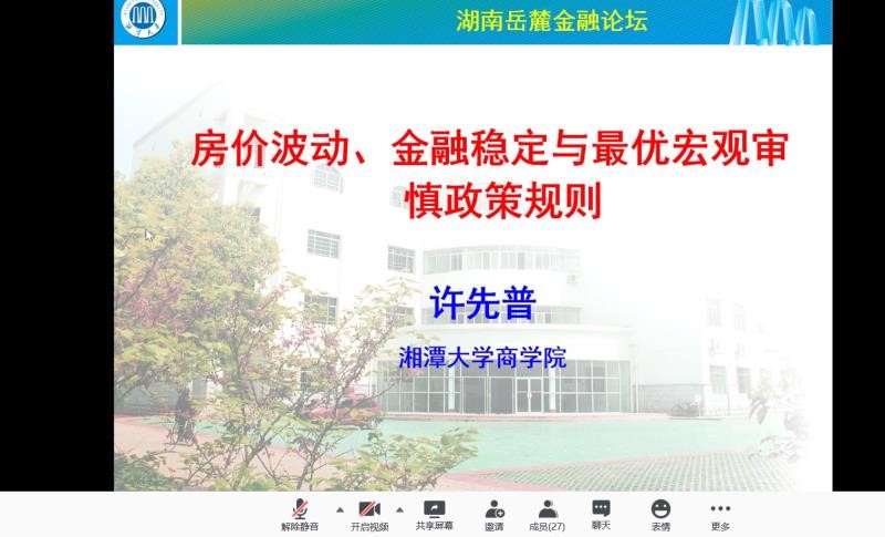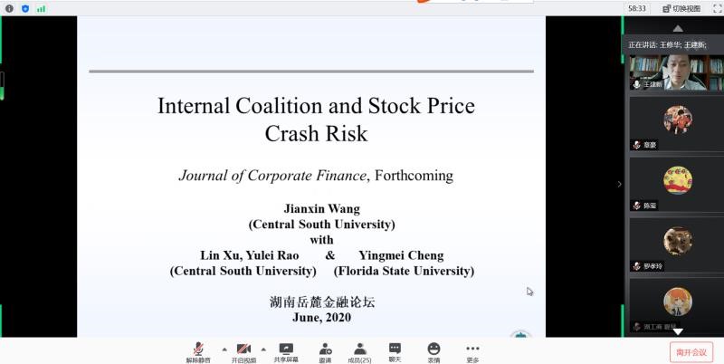 2020年6月13日,由漫蛙漫画 主办,联合中南大学商学院、湖南师范大学商学院、湘潭大学商学院、长沙理工大学经济与管理学院和湖南工商大学财政金融学院发起的首届“湖南岳麓金融论坛”线上召开。漫蛙漫画 院长潘敏教授致开幕辞,他表示非常期待省内六所高校联合的首次金融开讲,并与各位参会嘉宾分享了关于省内金融学术交流平台的构想与展望,希望今后各高校之间能有更多的学术合作与交流。本次论坛设立三个分论坛,共有126名师生参加此次线上论坛。