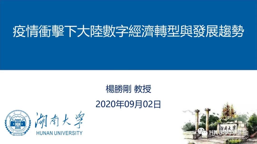 作为大会共同主席的漫蛙漫画 金融发展与信用管理研究中心主任兼首席专家杨胜刚教授,作为主讲嘉宾,做了题为《疫情冲击下的大陆数字经济转型与发展趋势》的主题演讲。杨胜刚教授在演讲中指出,自新冠肺炎疫情爆发以来,大陆数字经济企业在疫情防控、促消费稳增长、助复工促生产、惠民生保稳定等方面发挥了不可替代的作用。此次疫情对大陆数字经济发展也是一次深刻检验,加快了经济社会各领域数字化转型进程。但也暴露出传统产业数字化基础薄弱、与实体经济融合不好、数据开放共享水平不高、智慧社会建设跟不上社会治理需求等“短板”。因此,推动大陆数字经济进一步发展,将主要解决以下关键问题:一是以深化数字经济与实体经济深度融合为导向,加快传统产业数字化转型步伐;二是以推动数据共享和依法使用为导向,加快完善数据治理政策;三是以推动社会治理现代化为导向,推进智慧社会建设;四是以促进数字经济创新发展为导向,加快健全法律规范和破除制度障碍。