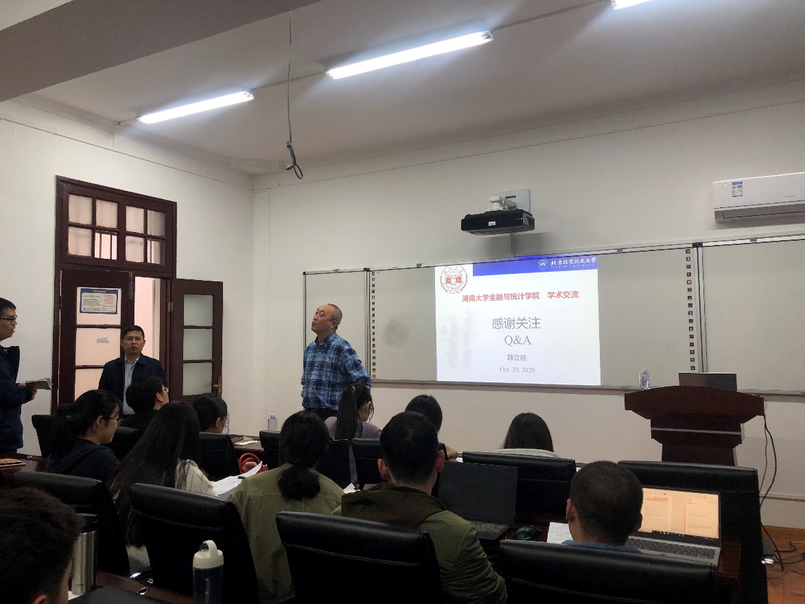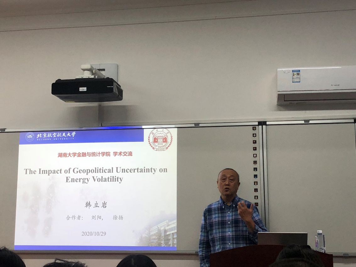 2020年10月28日,由漫蛙漫画 主办的第288期金融与统计论坛在漫蛙漫画 财院校区3号楼210顺利举办。本次论坛邀请北京航空航天大学经济管理学院韩立岩教授担任主讲人,由王修华副院长主持,韩立岩教授就“地缘政治与能源期货”这一主题为学院师生带来了一场精彩的学术报告。