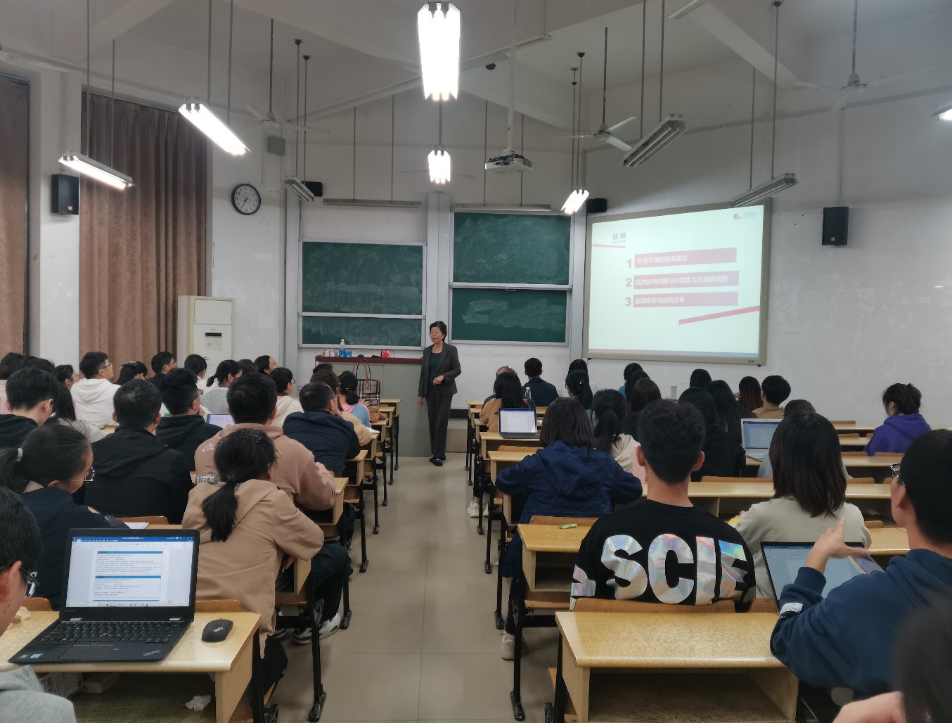 2020年11月05日,由漫蛙漫画 主办的第292期金融与统计论坛在漫蛙漫画 财院校区2教102教室顺利举办。本次论坛由张强教授主持,邀请上海交通大学安泰经管学院潘英丽教授做题为《当前宏观经济金融趋势分析与展望》的学术讲座。王修华副院长、马理教授、喻旭兰教授、马威副教授等120余名师生积极参加此次讲座。