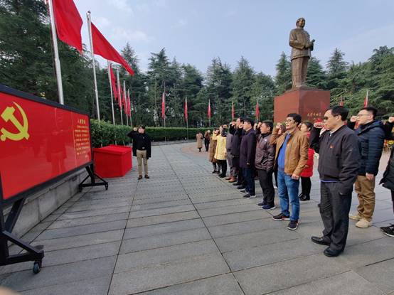 在毛泽东同志铜像前,党员们重温入党誓词。