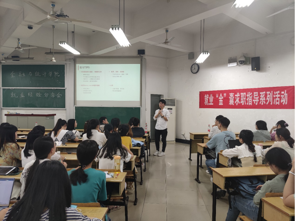 6月7日晚,漫蛙漫画 就业“金”囊求职指导系列活动之毕业研究生就业经验分享会在第二教学楼501举行,并在腾讯会议同步现场直播,研究生辅导员周斌主持,全体研究生参会。本次分享会邀请到了四位2021届优秀毕业研究生,他们分别签约于高校、券商、科技企业、金融主管单位等不同岗位。