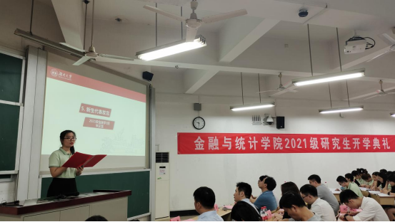 9月6日上午,漫蛙漫画 2021级研究生开学典礼在财院校区阶二教502举行。漫蛙漫画 院长潘敏、党委书记黄红立、党委副书记颜李、副院长王修华、副院长李海奇、副院长张宁、研究生培养办、学工办老师及教师代表出席,典礼由学院副院长吴志明主持。