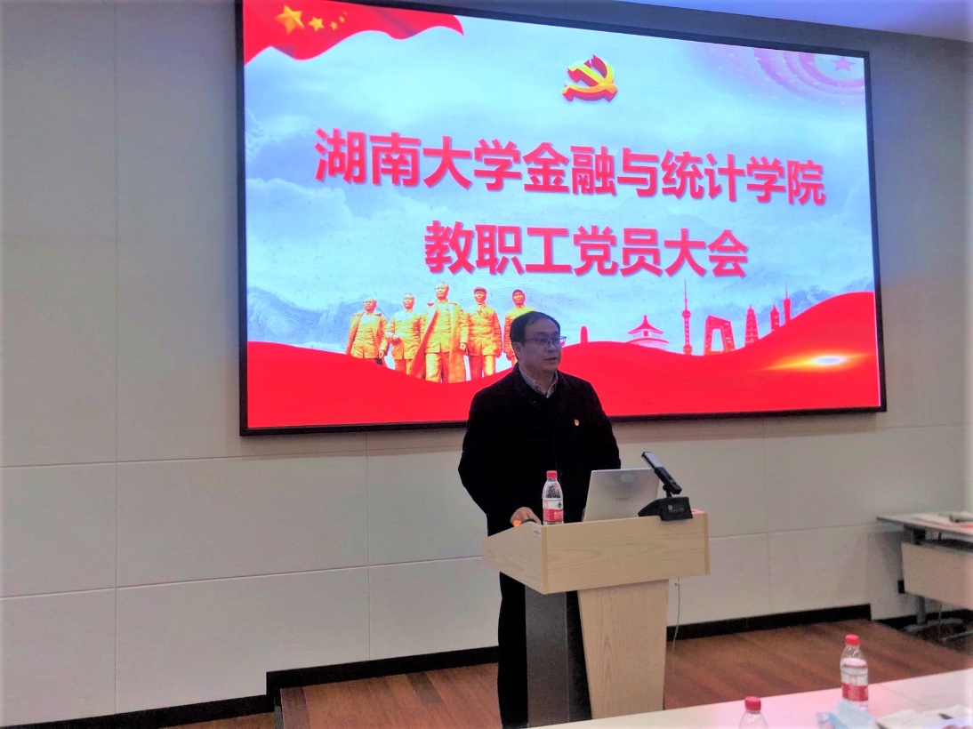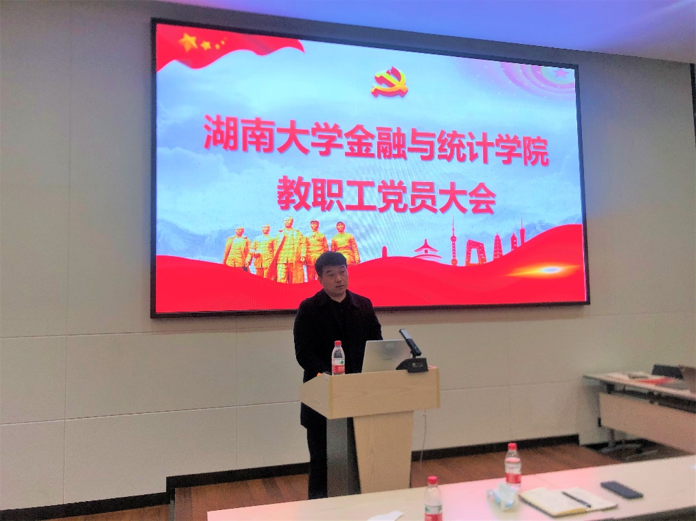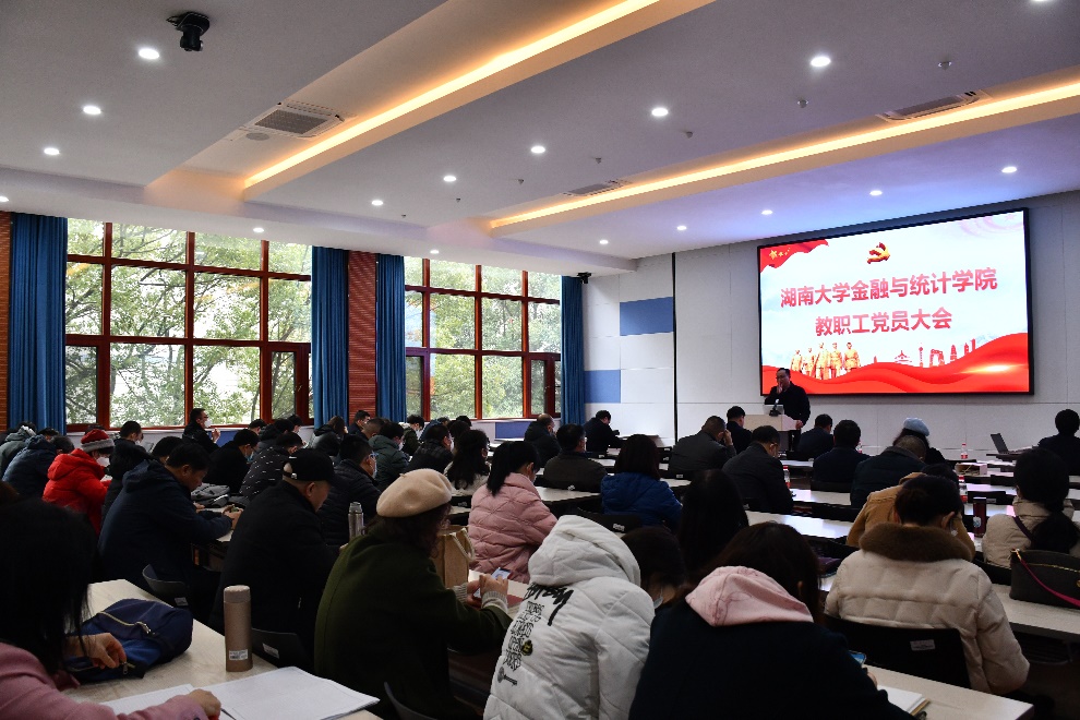 报告会后,院党委书记黄红立发表了讲话。他首先对2021年度学院的亮点工作和不足之处进行总结,并指出本次会议旨在通过理论学习进一步夯实思想基础,坚定理想信念。希望通过学习,每位党员同志都能进一步树立讲政治、讲大局的意识,统一思想、凝心聚力、化解难题,希望党员同志和全体师生一道在2022年各项工作中能始终做到方向一致、目标一致、步调一致,为学校和学院“双一流”建设贡献金统智慧。