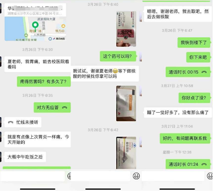 夏浩接到通知后也第一时间返校,履行了在孩子们入学时她许下的承诺:“只要你们需要的时候,我永远会在你们身边”,却做不到昨天答应自己女儿的:这个周末妈妈哪儿也不去,就在家陪你。夏浩说:“他们面临着考研复试、春招求职、毕业论文等一系列的压力,我必须在他们身边。”谁料,她突然接到了社区通知,要求居家隔离。人在家中,她的心却一直挂念着学生,通过电话等方式一对一联系学生,提供复试和求职指导。此外,夏浩作为学院的心理专干,主动请缨,和其他年级焦虑情绪较为严重的学生联系,帮助缓解和疏导他们的不良情绪,让他们以最好的状态迎接挑战。