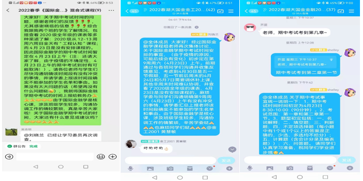 疫情期间,团队全面征求各教学班学生意见,充分尊重学生意愿,多次协商确定期中考试的时间,制定期中线下考试方案以及备选方案。