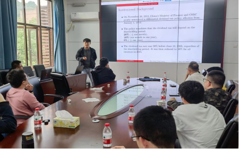 随后,尹希明老师就题为《Individual Investors Heterogeneity and Dividend Capturing》的研究论文为参会师生做了细致生动的报告。尹希明老师的研究通过中国市场个人投资者账户的交易数据,针对股息税是否会影响个人投资者获取股息的利润,以及个人投资者的异质性是否影响其收益的横截面表现两个问题开展了详实的检验。