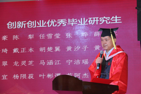 吴志明宣读优秀毕业生名单,向所有省级、校级优秀毕业生获奖同学致以热烈祝贺。