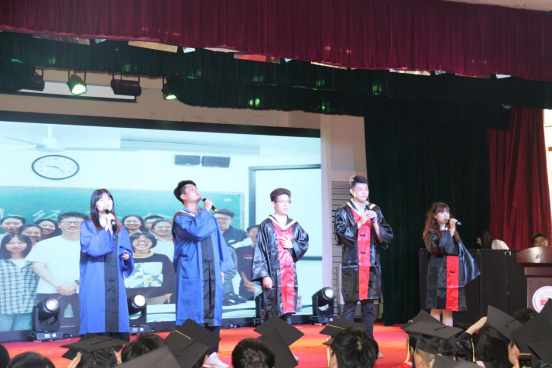 仪式开始前,大屏幕滚动播放了毕业季自制视频,毕业生代表献唱歌曲《凤凰花开的路口》,为闪闪发光的大学生活画个完美句号,表达对毕业生的美好祝愿。