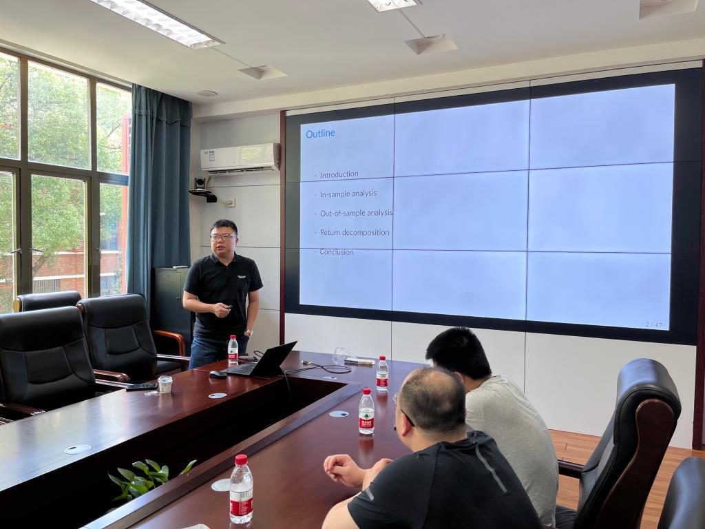研讨会上,余得水老师作了主题为《Forecasting Excess Returns: The Role of Cross-SectionalUncertainty》的学术报告,这篇论文的研究问题为横截面不确定性在时间序列中对股票市场预期回报的影响。本文所使用的指标cross-sectional uncertainty(CSU)是能够持续可得的,能够有效地在样本外预测股票收益,并且将CSU与在预测股票收益中流行的13个财务经济指标以及普遍用来衡量经济不确定性的5个指标进行了对比。在样本内分析中,这些指标绝大部分在预测股票收益中都有高度的可持续性,但这也会引发几个计量上的问题,因此本文使用了多项统计检验来评估模型的预测能力。