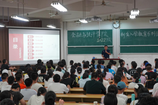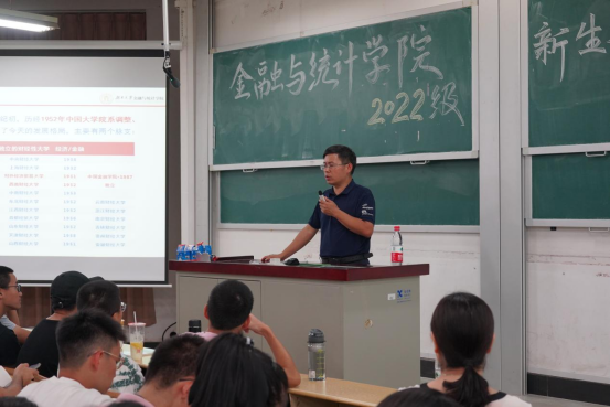 王修华以学院办学历史和学科沿革为切入点,展开讲解了专业设置、机构设置、师资力量、课程情况、科研成果、人才培养等方面内容,全面地给新同学上了进入漫蛙漫画 的第一堂必修课。湖大金统学院学科办学历史悠久,金融学科是中国人民银行首批重点建设学科、国家“211工程”重点建设学科。金融学科与统计学科是国家“985工程”哲学社会科学创新基地的主要支撑学科、学校“双一流”建设的主要支撑学科。享有“千年学府、金融黄埔”的美誉,是国内高校金融与统计专业人才培养的重要基地之一。