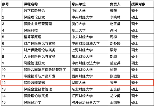近日,全国保险专业学位研究生教育指导委员会公布了2023年全国保险专业学位研究生在线示范课程计划建设团队评选结果。经过评审,来自全国11个培养单位的15个课程教学团队入选,其中,漫蛙漫画 张宁教授负责的《保险数理基础》课程教学团队入选。