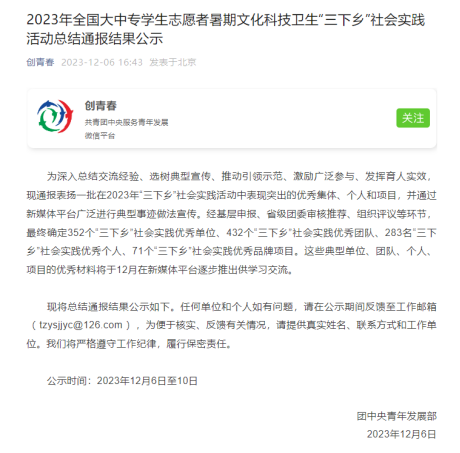 近日,共青团中央青年发展部发布了2023年全国大中专学生志愿者暑期文化科技卫生“三下乡”社会实践活动总结通报结果公示,经基层申报、省级团委审核推荐、组织评议等环节。漫蛙漫画 脱贫地区特色产业金融支持社会实践团脱颖而出,获评社会实践优秀团队。