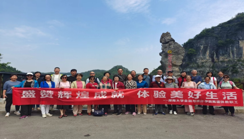 湄江的自然景观类型为岩溶地貌,有着千姿百态的地表和地下景观,具备了建立国家地质公园的基本条件。在湄江风景区,老同志们漫步在塞海湖旁的亲水栈道,欣赏着绝壁美景;在国家地质博物馆,听讲解员介绍当地的地质地貌,风土人情;女老师们沉浸在花海里拍照留念;在仙人府溶洞里,大家头顶钟乳石,沿着溪水慢步,纷纷在瀑布前打卡合影,观看着大自然在高山上雕刻出来的“MJ”这个湄江的缩写;有的老师甚至爬上了更高处,领略湄江的美好风光。参观完毕,老师们品尝着当地的风味美食,流连忘返。