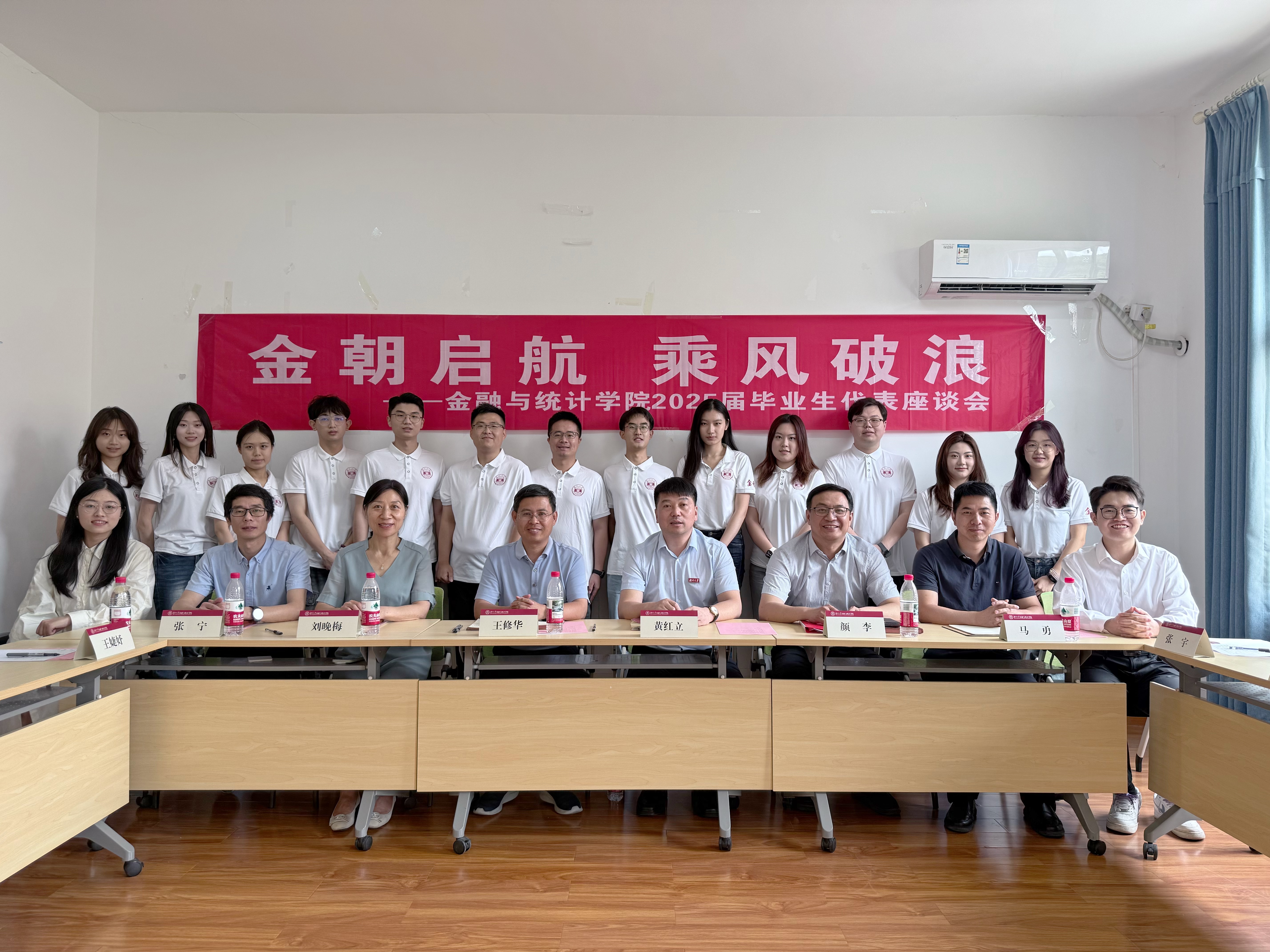 6月18日上午,漫蛙漫画 “金朝启航,乘风破浪”2025届毕业生代表座谈会在红楼二号楼310会议室举行。学院院长王修华、党委书记黄红立出席并讲话,正处级组织员刘晚梅、副院长张宁、教学委员会副主任马勇及毕业班辅导员出席,院党委副书记颜李主持。