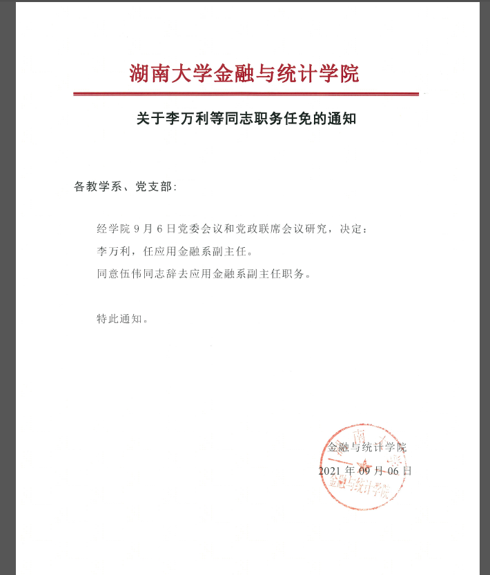 关于李万利等同志职务任免的通知