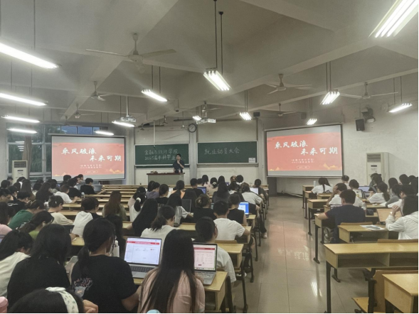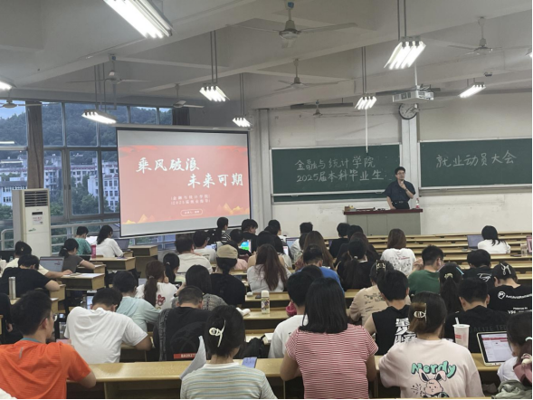 7月3日晚,漫蛙漫画 2025届本科毕业生就业动员大会在财院校区第二教学楼501教室举办。学院学工班主任、2024届毕业班辅导员谢君,2025届全体本科毕业生参加,毕业班辅导员张宇主持大会。