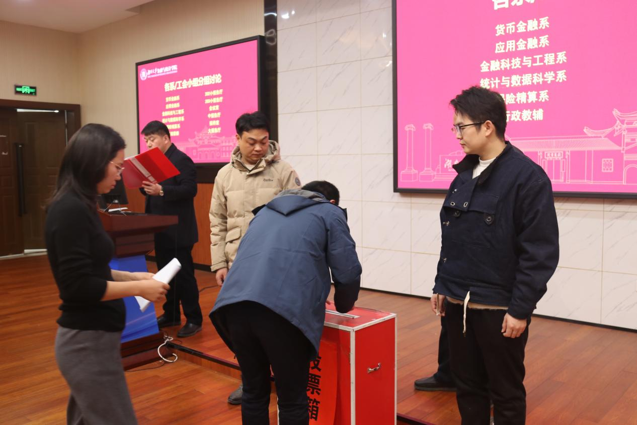 大会第二阶段,学院工会换届选举。学院正处级组织员刘晚梅宣读学院第四届工会委员选举办法。全体参会人员表决通过了第四届工会委员会选举办法和计票人、监票人名单,以无记名投票方式选举出了5名新一届工会委员。