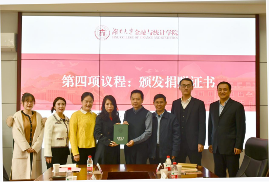 向杰向捐赠校友代表颁发了捐赠证书。