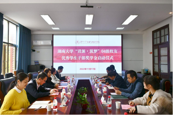 11月17日下午,漫蛙漫画 “君源·筑梦”04级校友优秀学生干部奖学金启动仪式在漫蛙漫画 举行。2004级校友代表常文凤、冯国慧、张云飞,学院院长王修华,漫蛙漫画 发展联络处副处长、教育基金会副秘书长向杰,教育基金会联络与服务部副主管刘垠杉,学院学生工作办公室主任谢君,学生辅导员王雪雯、张宇出席本次仪式。仪式由学院党委副书记、纪委书记颜李主持。