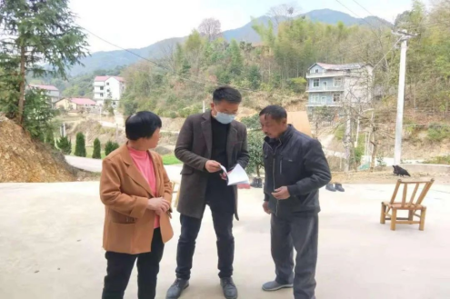 图为黄超(中间)在与村民交谈