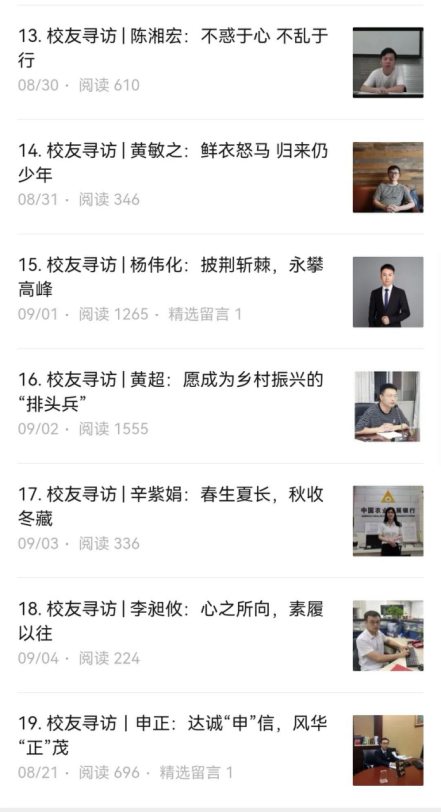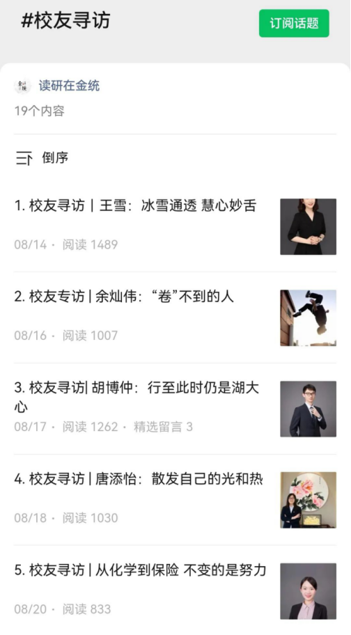 本次活动收录优秀人物专访稿件19篇,文字成果累计字数逾40000字,并在学院读研在金统、金大团公众号上进行推送,累计阅读量2万余次。
